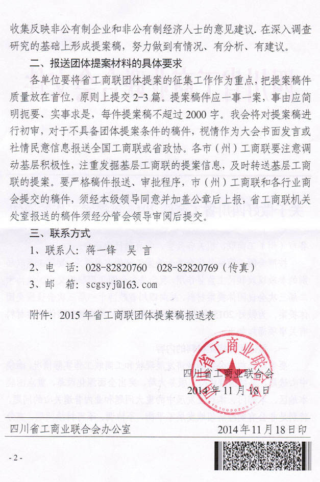 关于四川省工商联2015年提案工作的通知转发给你们,根据化妆品行业的实际情况。提出你的建议形成议案,根据大家的建议整理后上报四川省工商联。