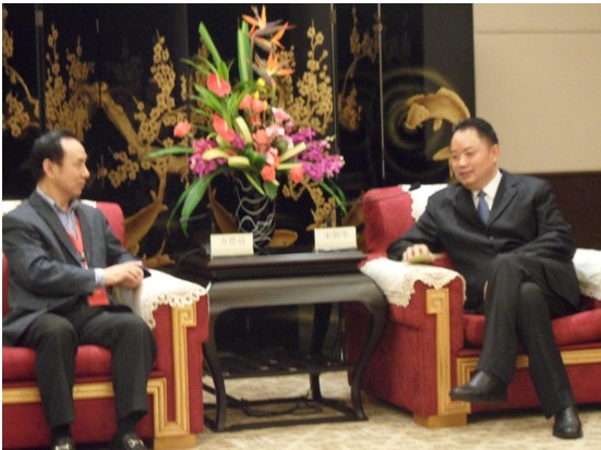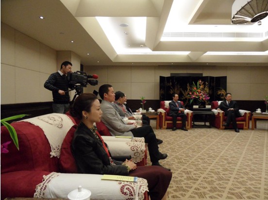 眉山市市长宋朝华、市政府副秘书长、市投资局局长罗万东、彭山县委书记蔡刚等领导与四川省化妆品商会会长方学贵,常务副会长杨仲武、徐晨辉、石明生、黄虹等商会领导。关于建立西部时尚之都“美博城”进行交流,希望西部时尚之都“美博城”落户眉山市彭山县青龙。